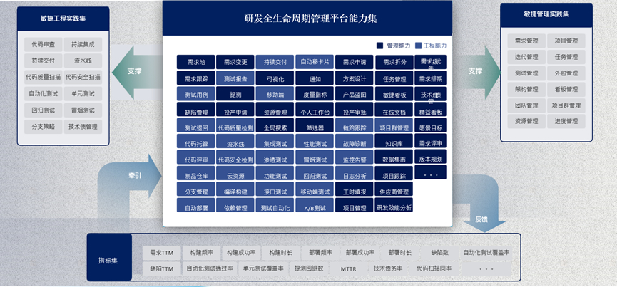 可视化管理、、重视数据安全、、、、工具固化流程、、交付质量提升、、、、交付效率提升、、、、精准执行预算、、、多视角全域效能、、一站式测试平台、、打通DevOps自动化工具链