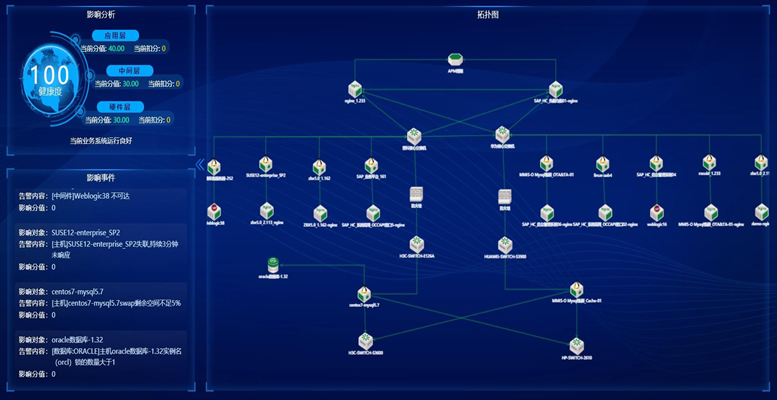 集中监控:从底层硬件到上层应用,,,监控数据需要集中采集和分析,,,,并提供统一的告警通知和业务全景可视化;同时支持与虚拟化、、、、云平台等外部平台对接起来。。。